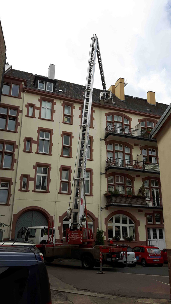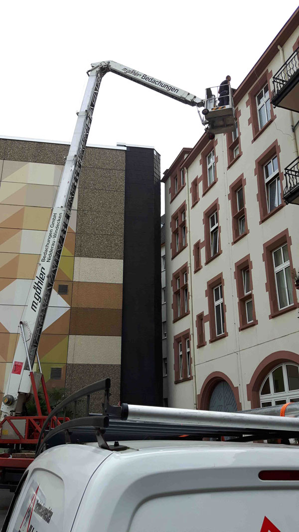 18. August 2017 "Hoher Besuch" bei der Diakoniestation - die Dachrinnen sind jetzt wieder auch für starke Regenfälle gerüstet.